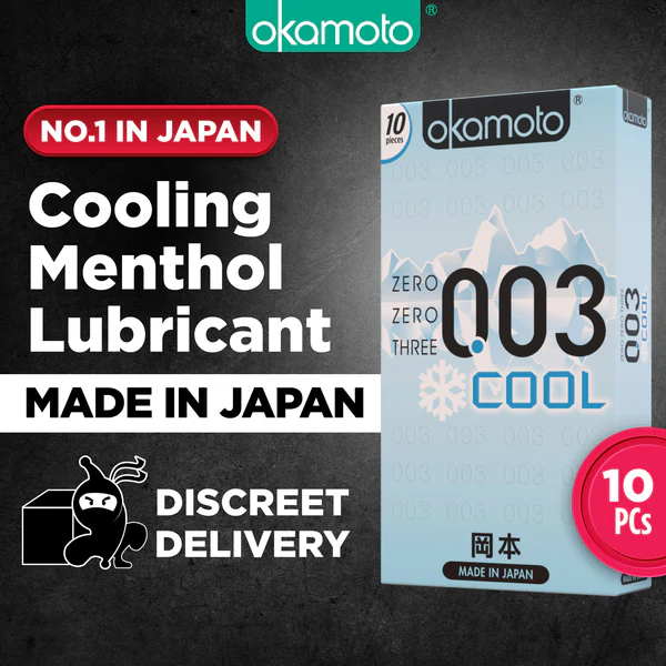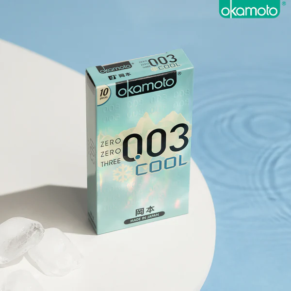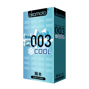 Okamoto Cool  dòng bao cao su siêu mỏng chỉ 0.03mm, tích hợp tinh chất bạc hà thiên nhiên. Thiết kế mềm mại, ôm sát giúp tăng hưng phấn và kéo dài cuộc yêu, thích hợp cho những ai yêu thích cảm giác thật và trải nghiệm mới mẻ khi gần gũi.