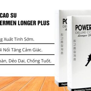 – Bao cao su gây tê Power Men Longer Plus có chất bôi trơn chứa 9% Benzoc@in giúp kéo dài thời gian cho nam giới.